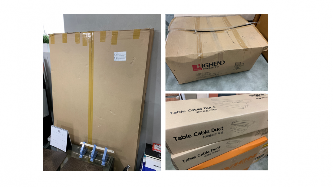 그래서 포장도 뜯지 못한 회의 테이블 2개를 저희가 갖고 있을 수가 없어서